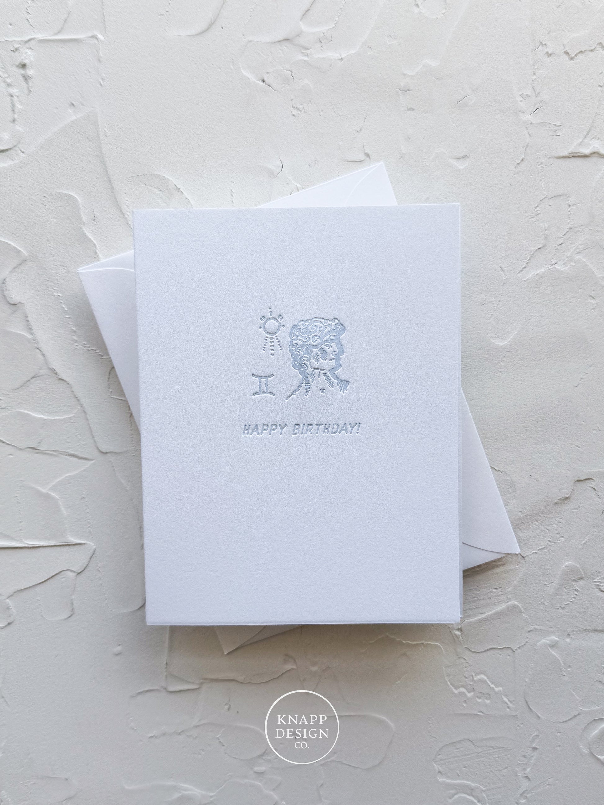 The perfect letterpressed birthday card for that person in your life that is such a Gemini!