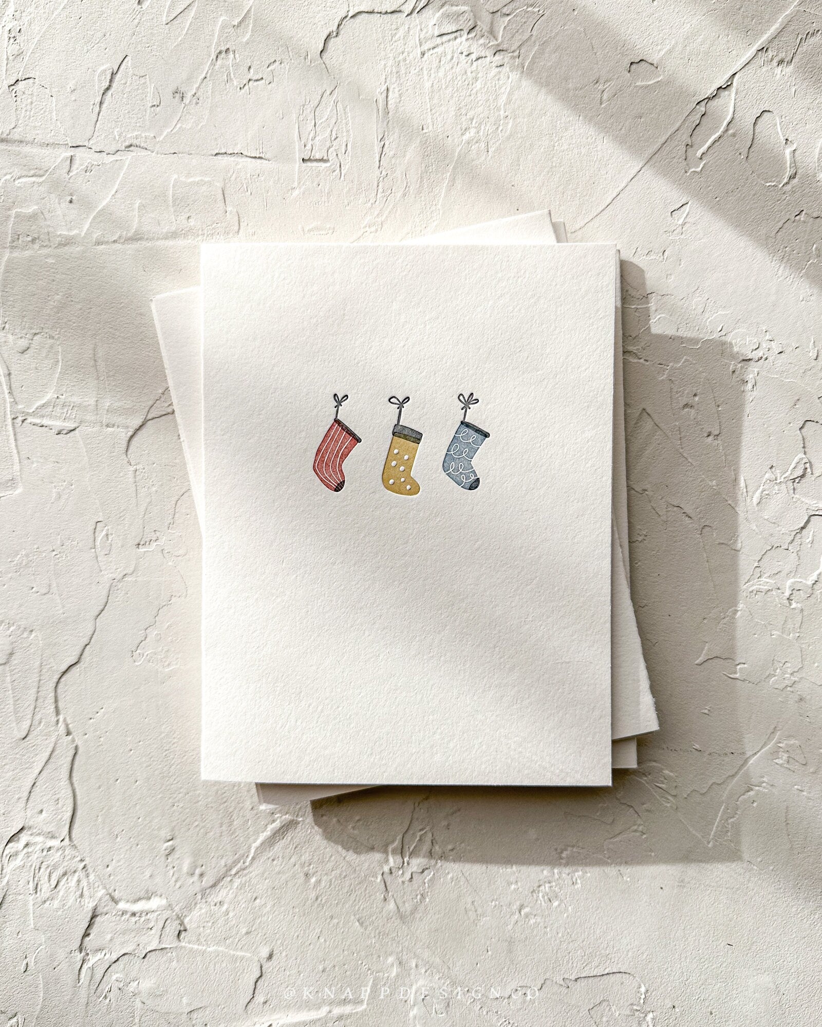 Cute and minimalistic holiday card with an adorable Christmas stocking illustration.