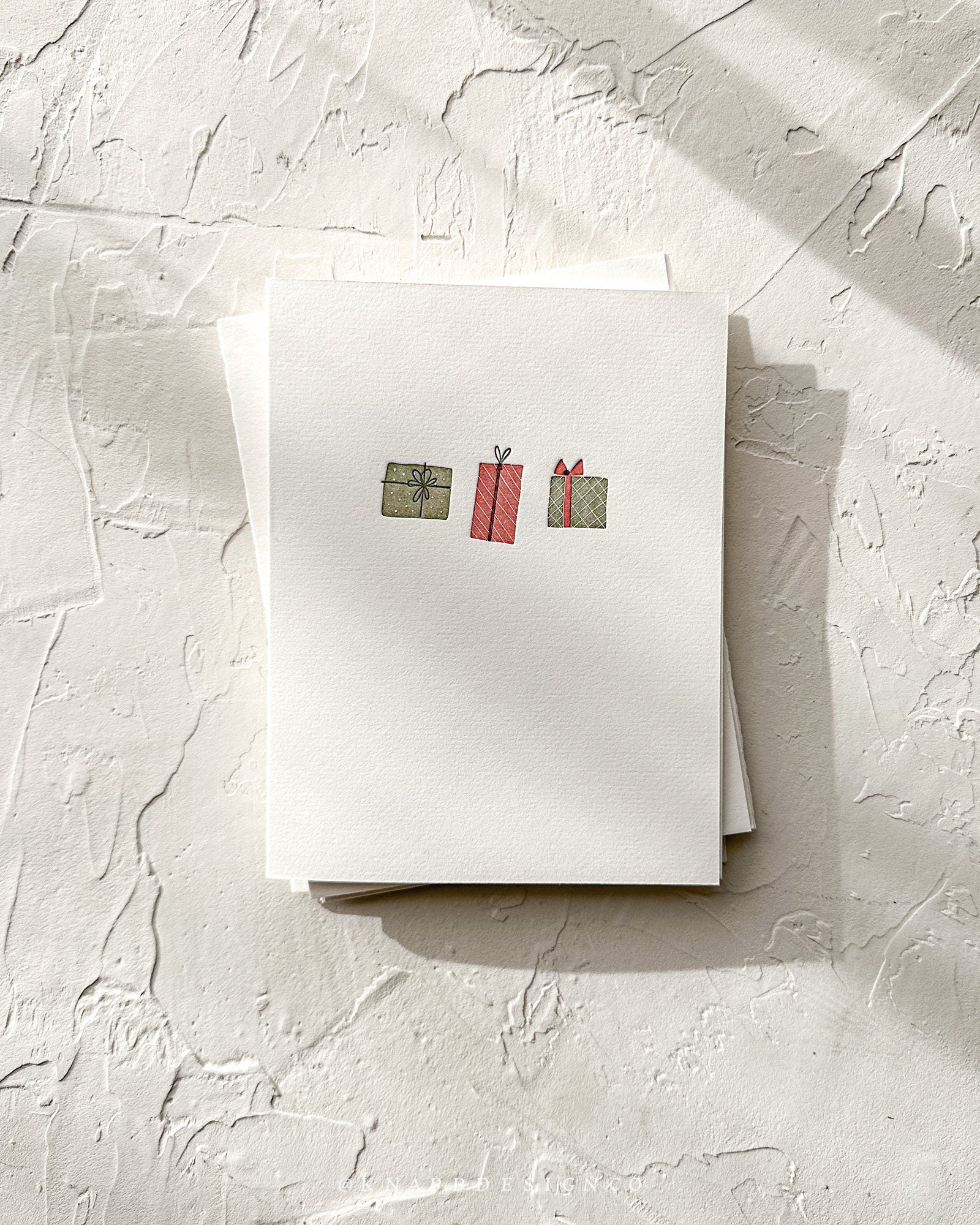 Cute and minimalistic holiday card with an oh-so-cute wrapped Christmas gift illustration.