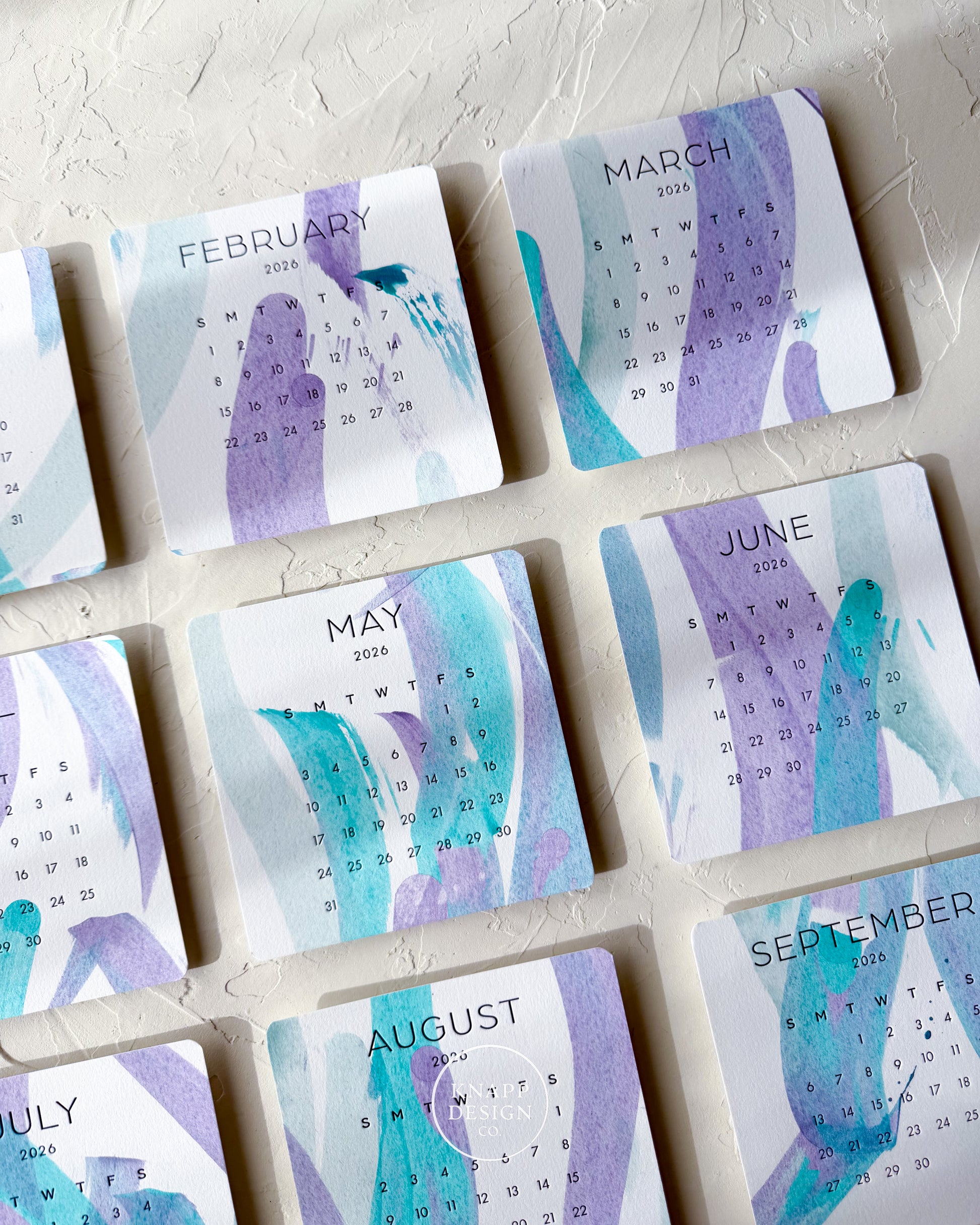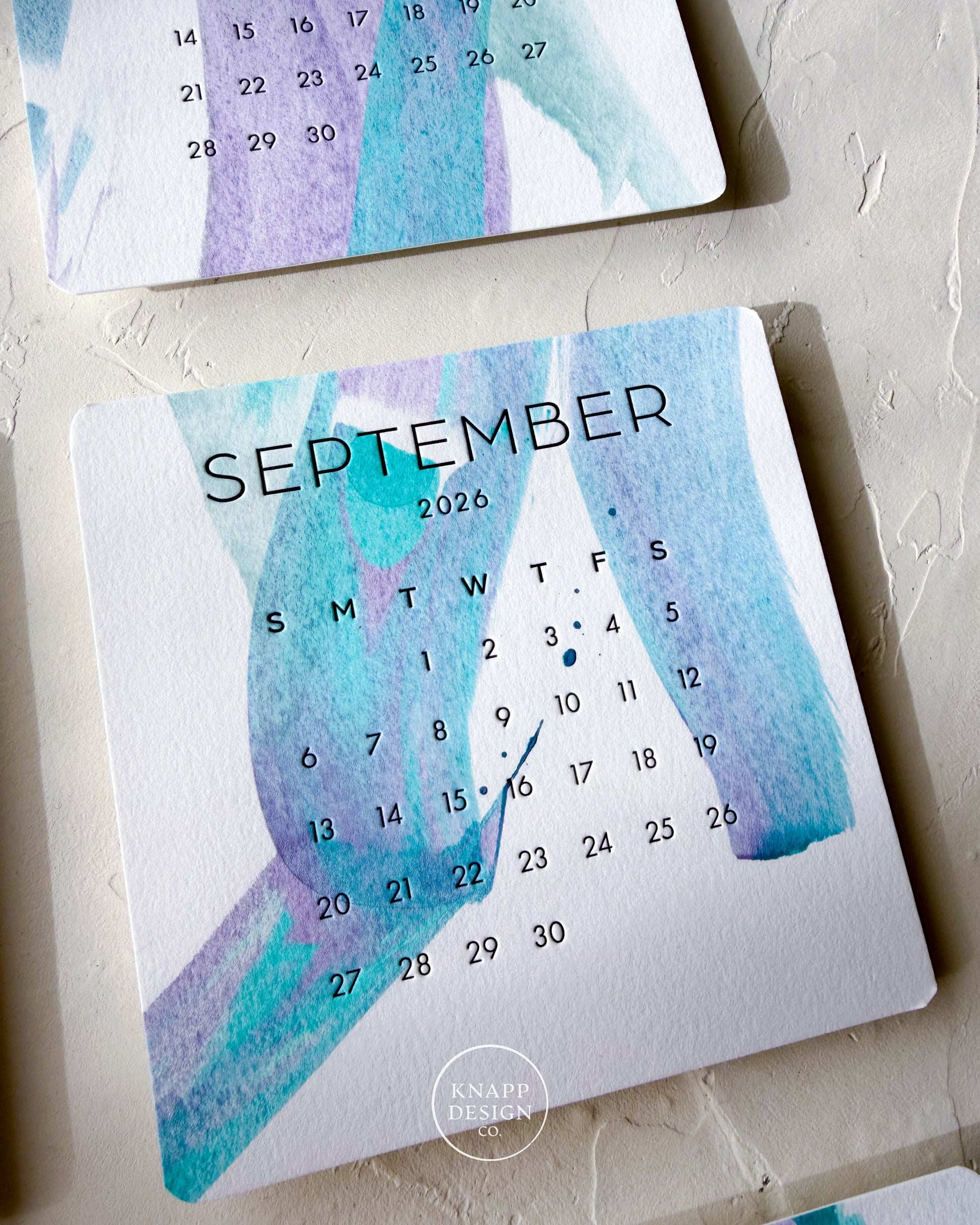 Brighten your workspace all year long with this hand-painted 2026 desk calendar, created in the Knapp Design Co. studio. Each month features its own original acrylic wash, soft pastels, layered strokes, and organic shapes, making every page a tiny piece of art.