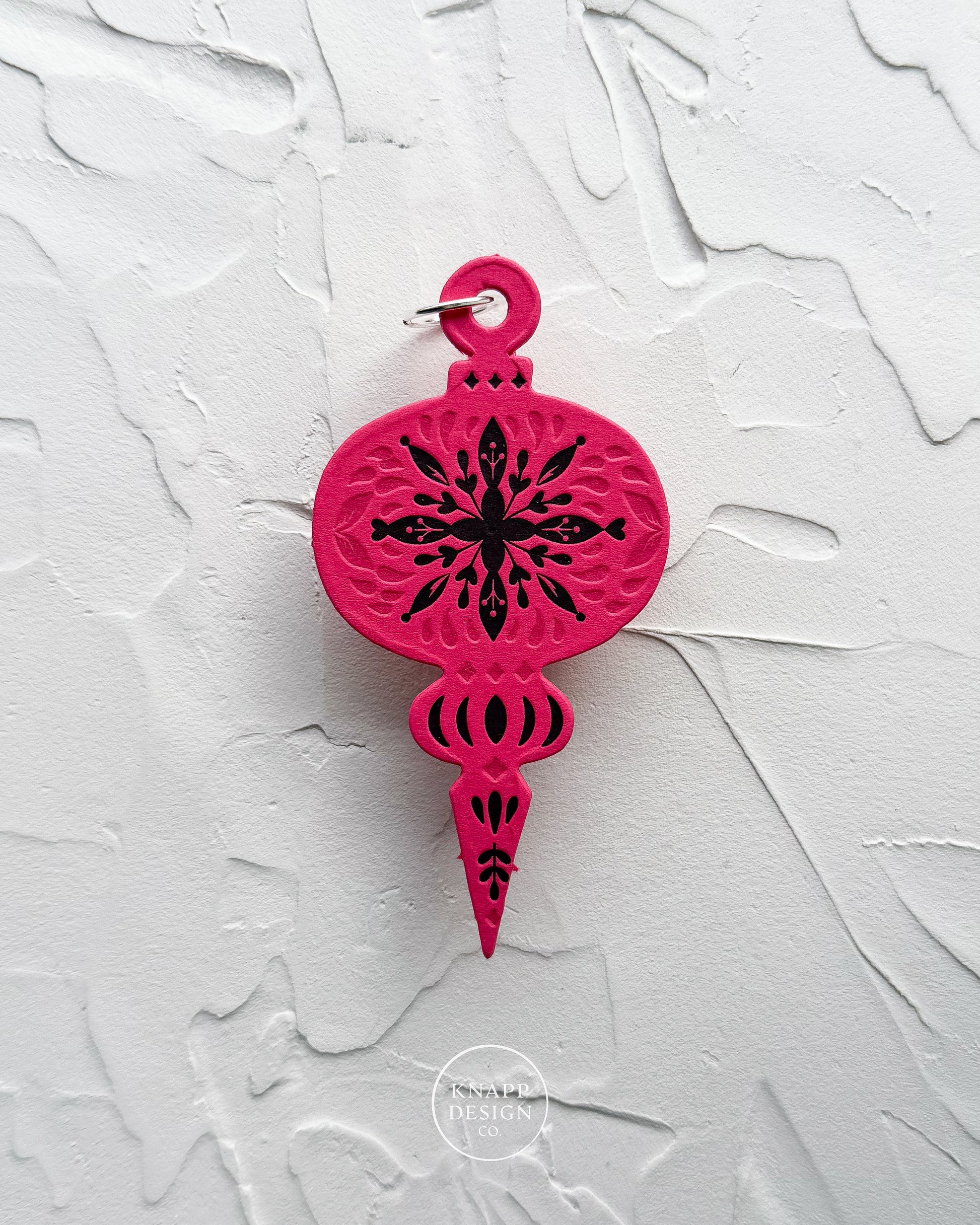 🎄 One vintage-style ornament printed on Hot Pink paper