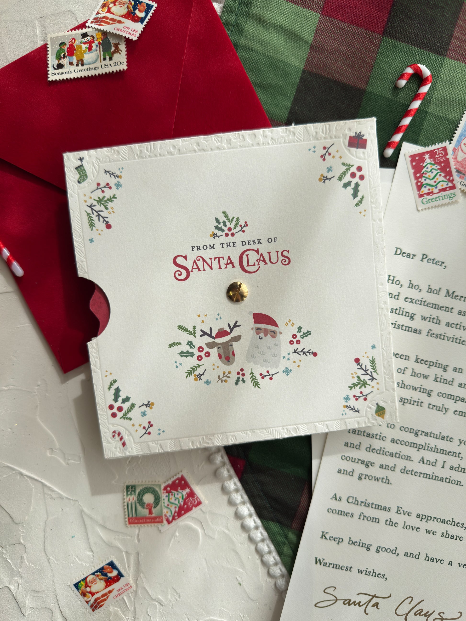 🎅 Includes a green cardstock envelope, ornament name tag and wax seal