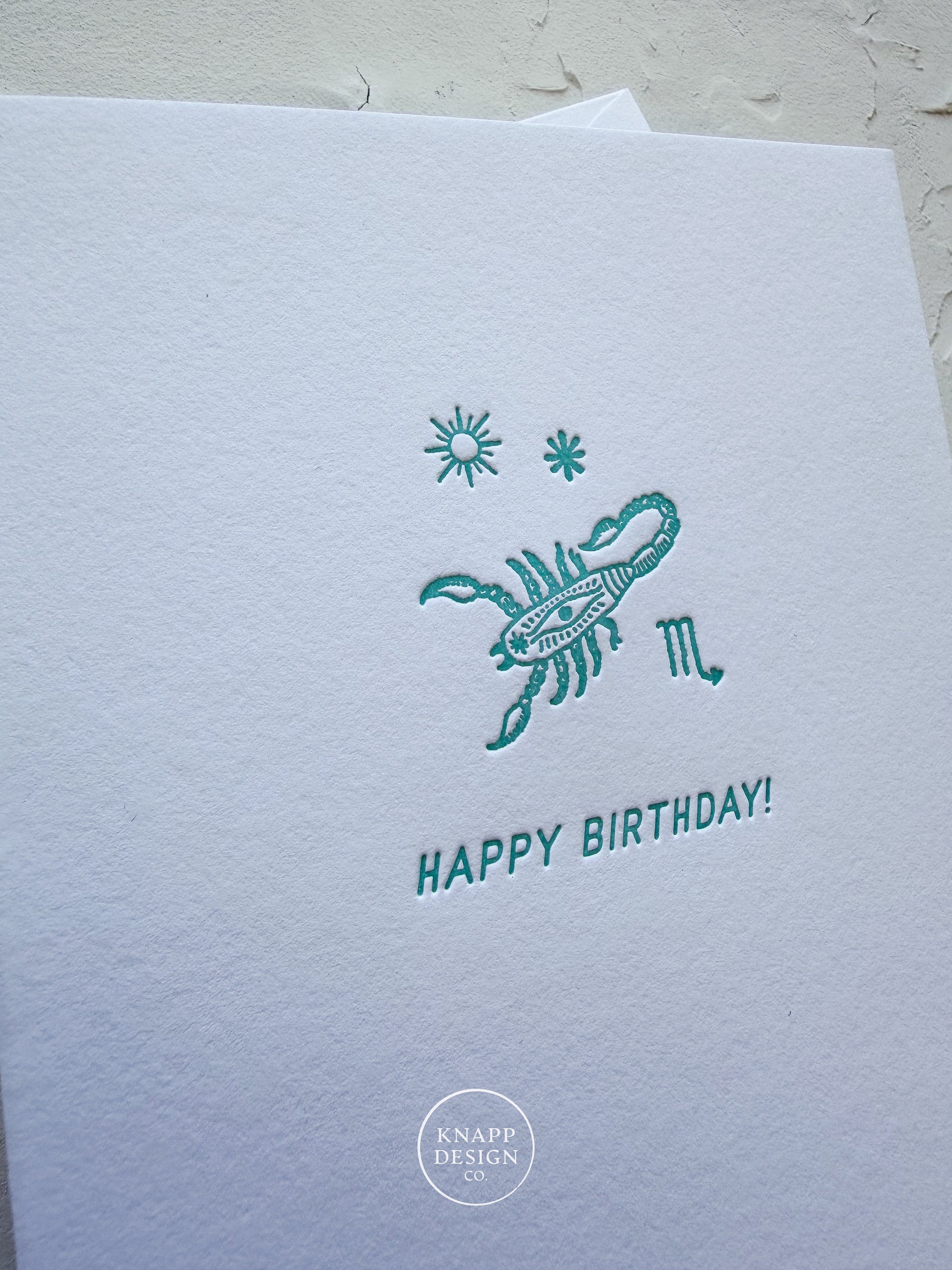 The perfect letterpressed birthday card for that person in your life that is such a Scorpio!